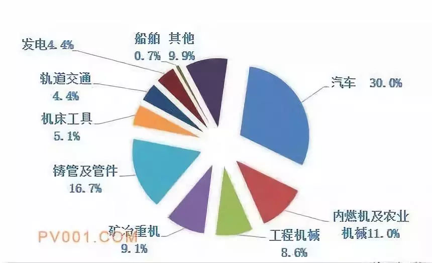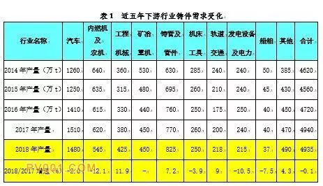 從下游行業(yè)鑄件需求結構變化來看,2018年鑄管及管件、工程機械和軌道交通都有較高幅度的正增長,汽車工業(yè)對鑄件的需求多年來出現(xiàn)首次下降。